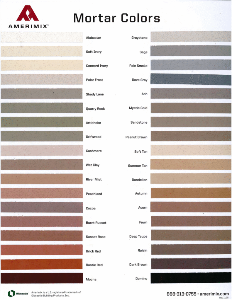We purchase all of our mortar from Amerimix. This photo is to see the options only as we are not a dealer of Amerimix or affiliated with them in any way.